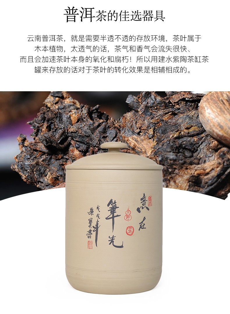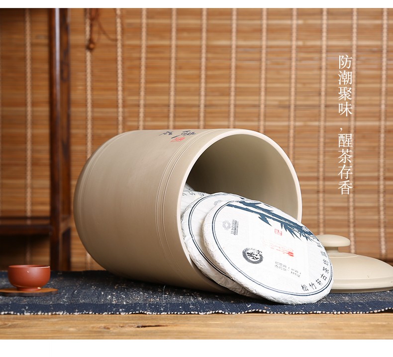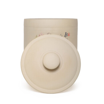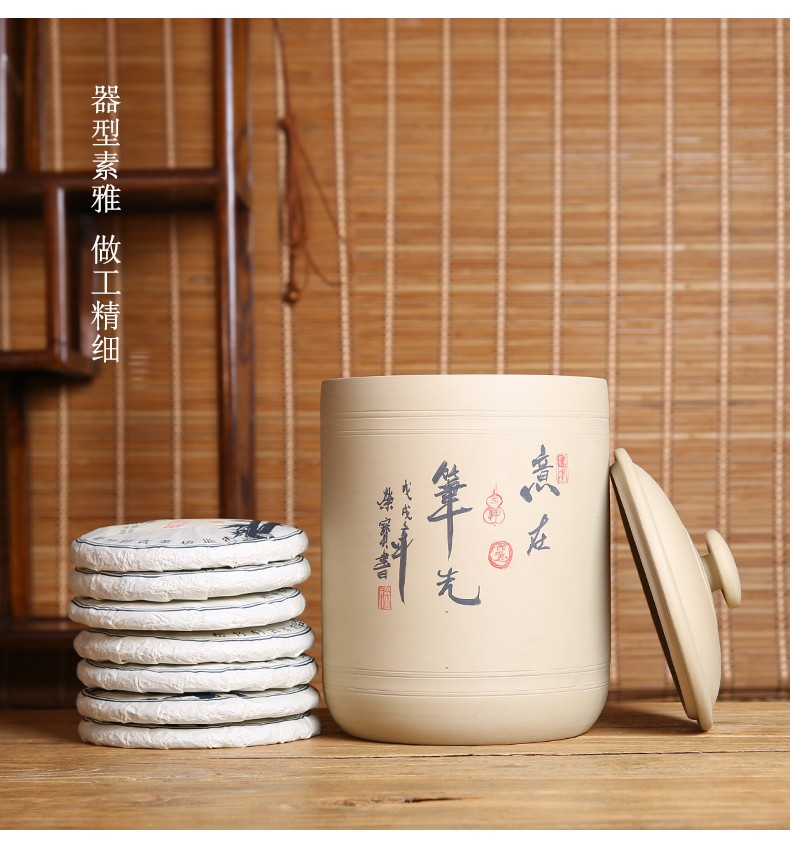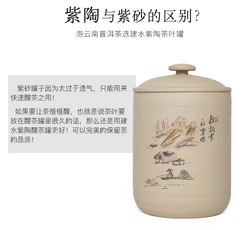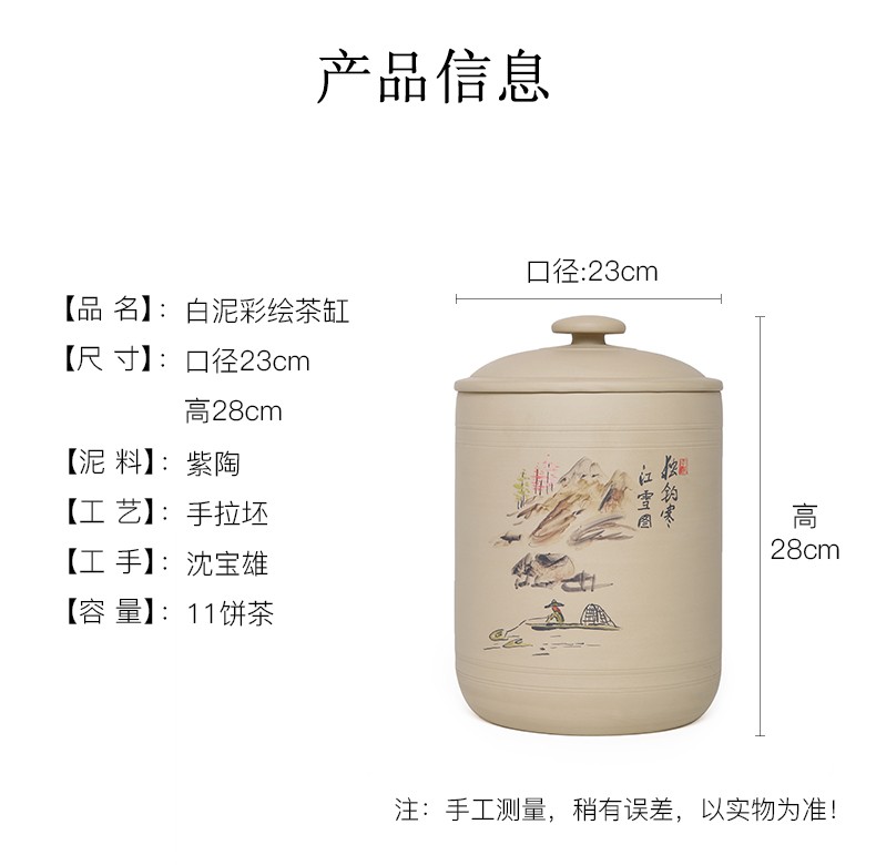 紫陶白泥 7饼茶缸大号山水彩绘陶瓷茶叶缸
